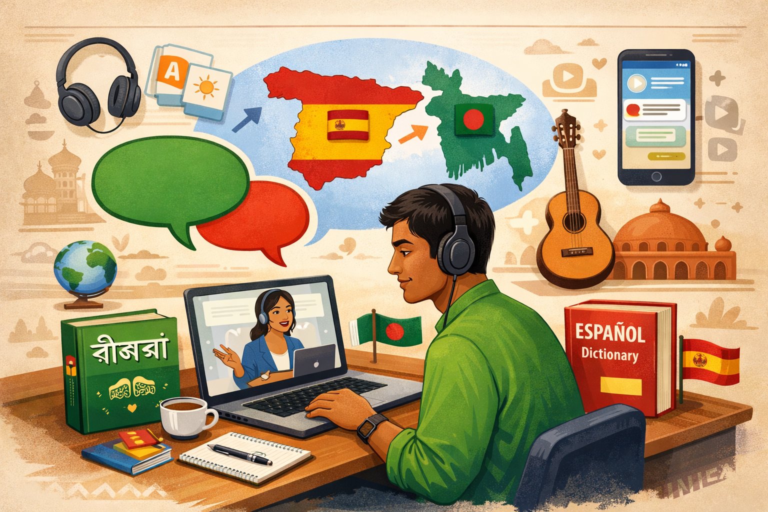- Best results come from three layers: audio-first Spanish listening, Bengali-Spanish grammar with clear examples, and speaking practice from the start.